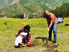 植树造林是改善生态环境、造福后代的好事,大家要用实际行动践行“绿水青山就是金山银山”的理念,唤