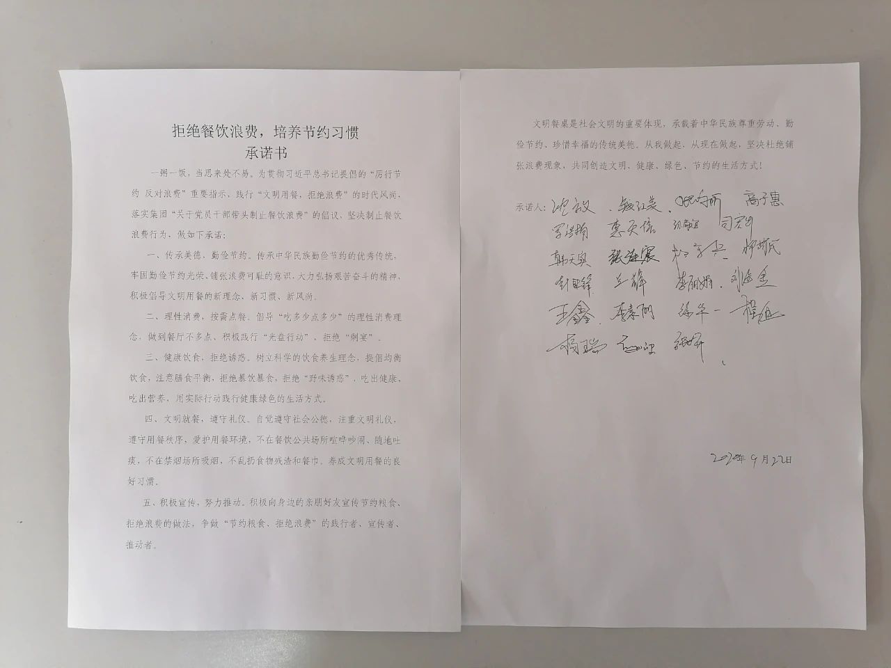 拒绝餐饮浪费,培养节约习惯 ——金润德(测绘)全体员工签署承诺书