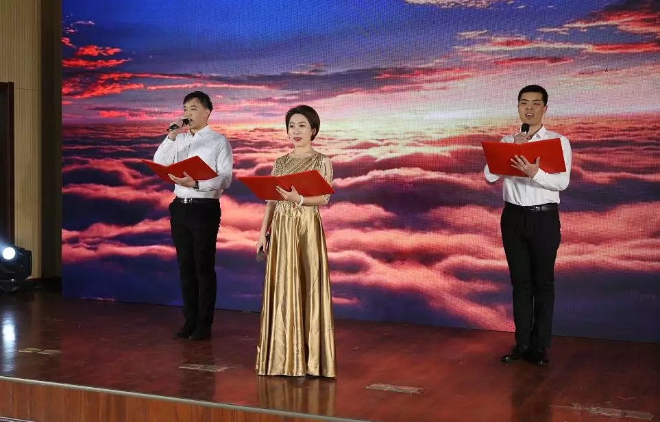 演出在歌伴舞《不忘初心》中拉开序幕,节目内容丰富多彩、形式多样,有情景剧、歌伴舞、小品、诗朗诵等,充分展示了集团员工良好的精神面貌。演员们个个精神饱满,情绪高昂,以最好的状态将节目奉献给大家,赢得了观众阵阵掌声。