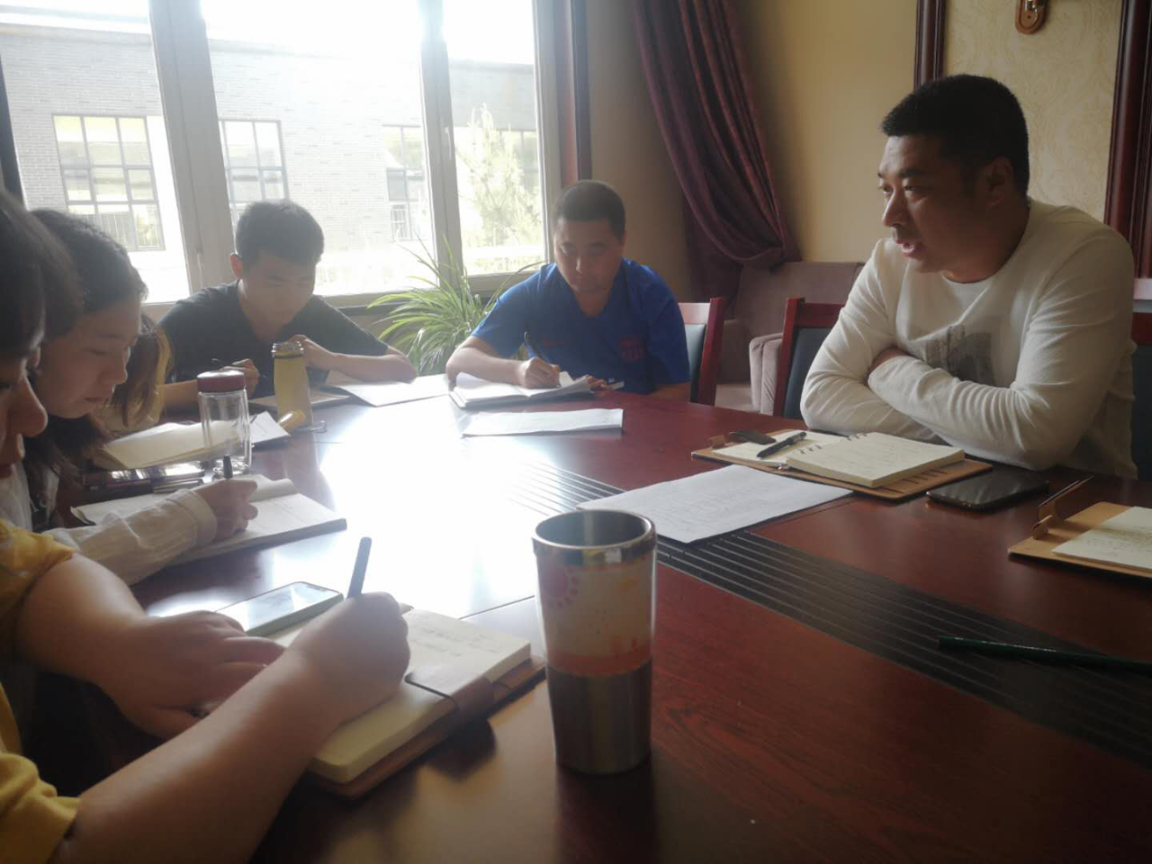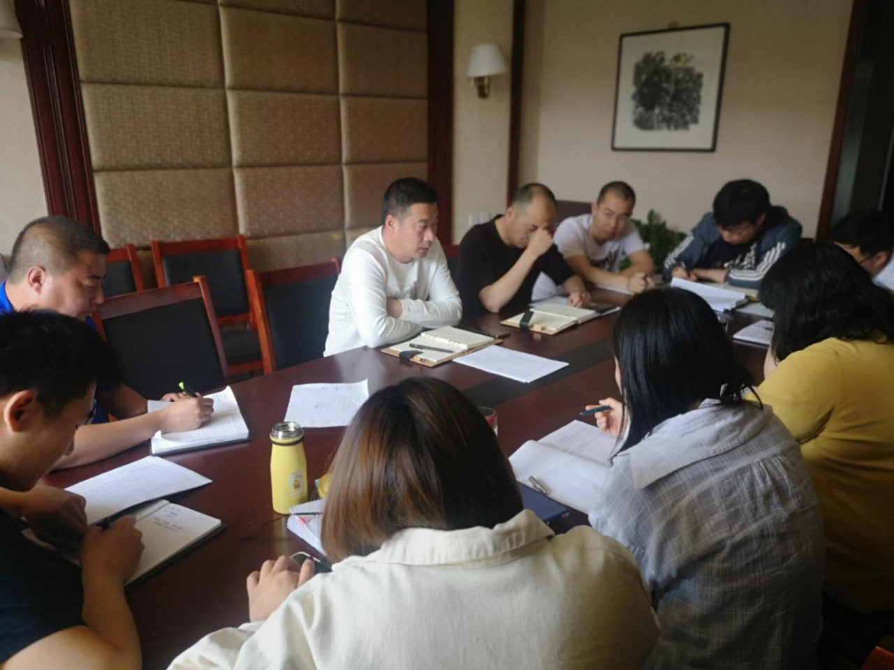 为推进项目进度,5月6日,“五一”长假刚过,晟昊公司副总经理王海滨就组织业务部门员工召开了土地整治项目研讨会。
