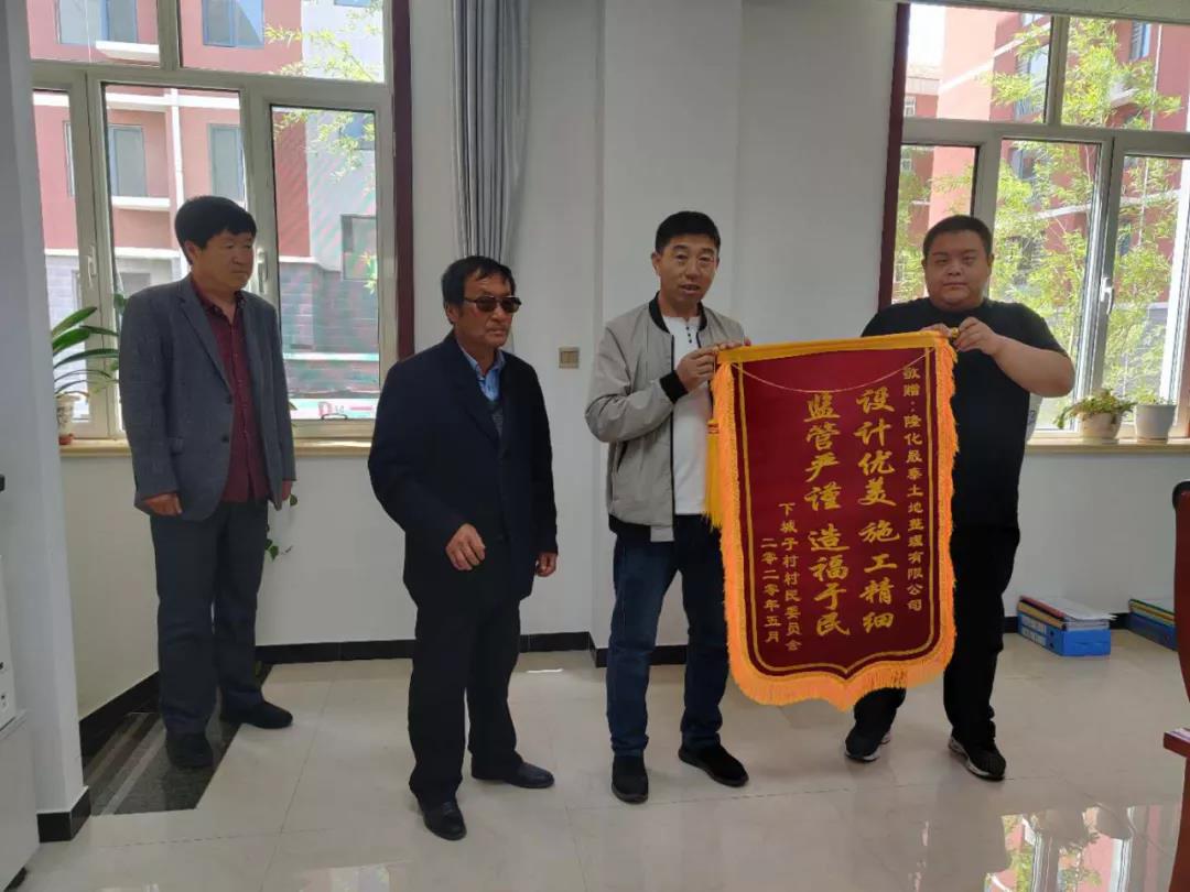 5月18日,隆化县步古沟镇下城子村村主任和村民代表为隆化晟泰公司送来了“设计优美、施工精细、监管严谨、造福于民”的锦旗,并表达了对晟泰公司工作的肯定和感谢。