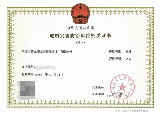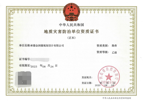 近日,经河北省自然资源厅核准,金润德公司申报的地质灾害治理工程勘查、地质灾害治理工程设