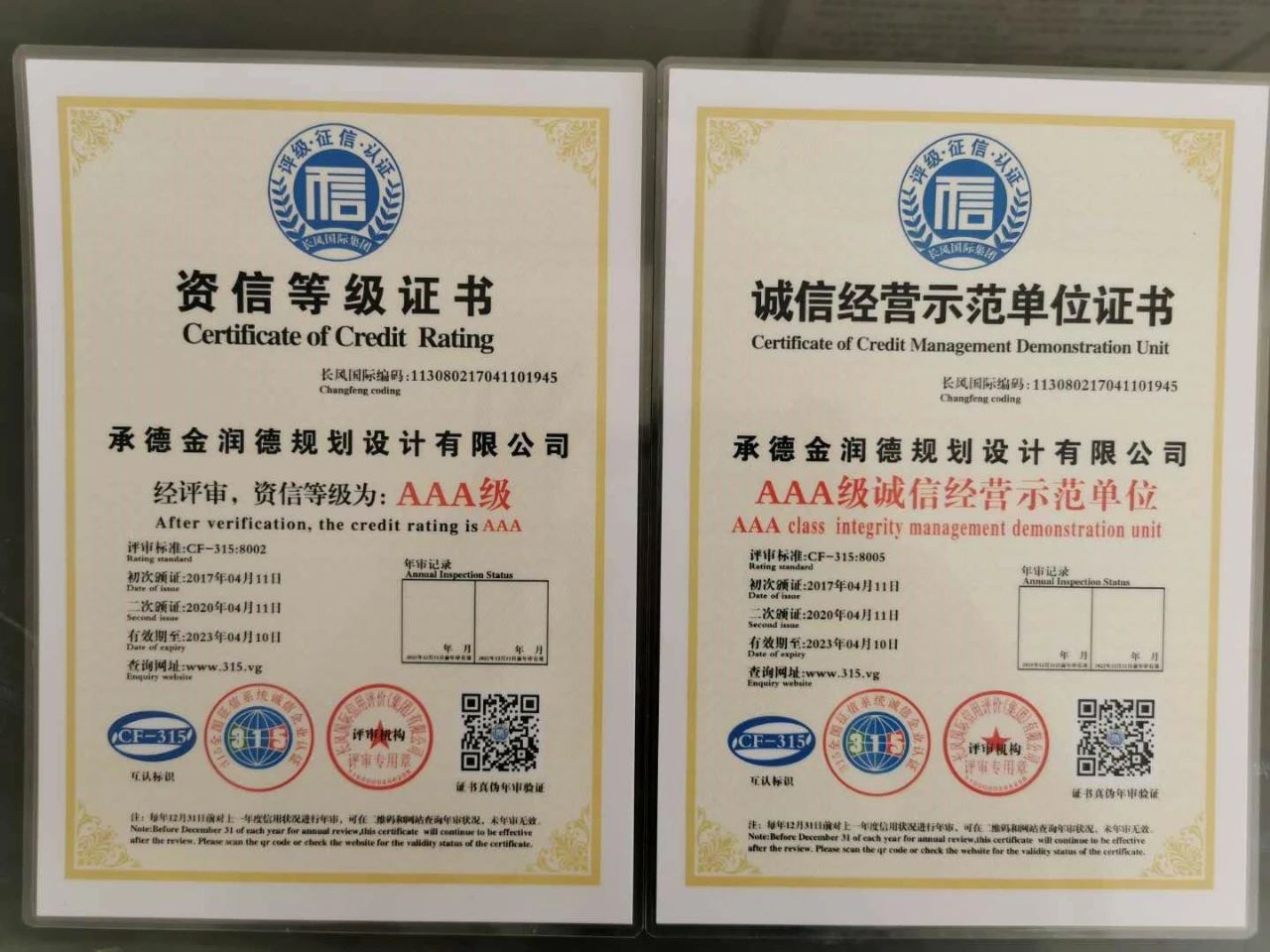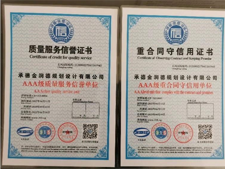 示范单位证书”、“AAA级质量服务荣誉证书”、“AAA级重合同守信用证书”并得到了“AAA级信用单