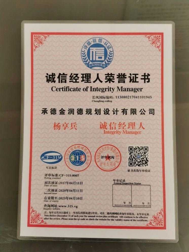 位”认定铭牌;杨享兵总经理获得“诚信经理人荣誉证书”。